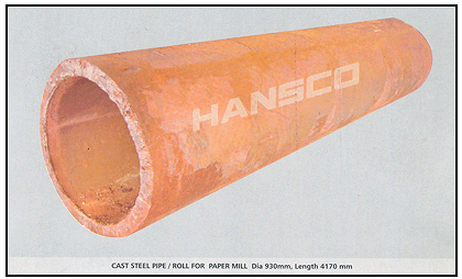 HANSCO is one of the leading manufacturer of Steel Castings for Paper Mill Industry (Press Rolls / Pipes) in various Grades like IS 1030, IS 2708 and many other grades as per requirement of customers.